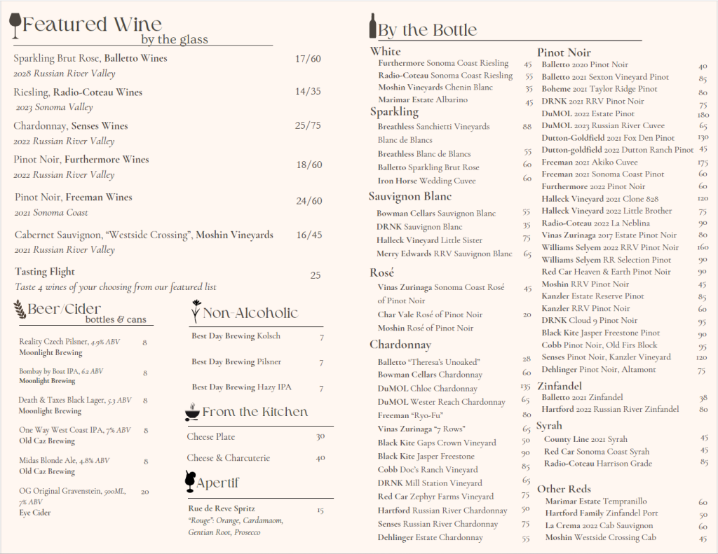 Our December Wine List